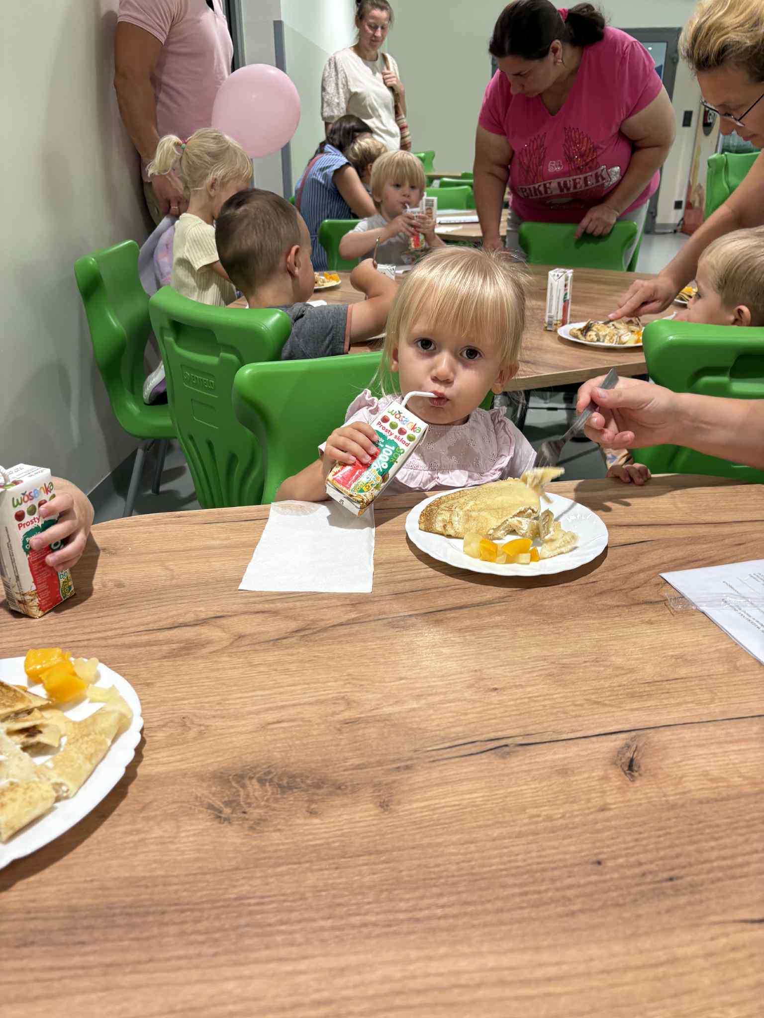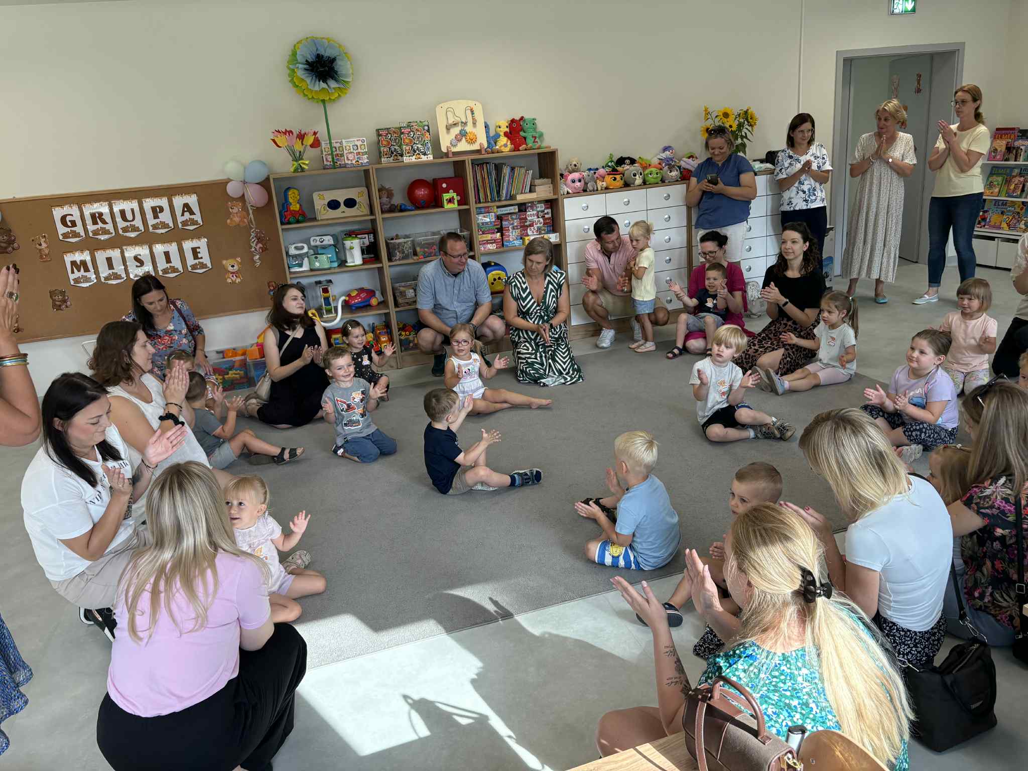 29 sierpnia w naszym przedszkolu odbyło się wyjątkowe spotkanie adaptacyjne dla dzieci, które od września rozpoczęły swoją przygodę w grupie „Misie”. To ważny moment zarówno dla maluchów, jak i ich rodziców – pierwszy krok w nowym, pełnym radości i odkryć świecie przedszkola. Spotkanie rozpoczęło się od serdecznego powitania, które skierowała do wszystkich Pani Dyrektor. Jej ciepłe słowa dodały dzieciom otuchy i zachęciły do aktywnego udziału w zabawie. Następnie przyszedł czas na wspólne tańce, śpiew i integracyjne zabawy. Misie od razu udowodniły, że świetnie odnajdują się w nowych rolach – na ich twarzach pojawiały się uśmiechy, a radosny śmiech wypełnił salę. Dzieci mogły poznać swoje panie, pierwszych kolegów i koleżanki oraz poczuć, że przedszkole to miejsce bezpieczne, przyjazne i pełne pozytywnej energii. Jesteśmy dumni z naszych najmłodszych przedszkolaków i cieszymy się, że ten pierwszy dzień pokazał, jak wiele radości daje bycie razem. To dopiero początek pięknej przedszkolnej przygody!
