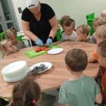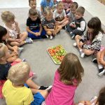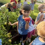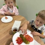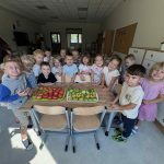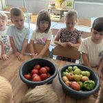 Na wiosnę dzieci z naszego przedszkola założyły własny warzywniak. Z zaangażowaniem podlewały grządki, obserwowały, jak rośliny rosną i uczyły się cierpliwości. Po wakacyjnej przerwie na dzieci czekała wyjątkowa niespodzianka – rośliny pełne dorodnych, pomidorów! Ich widok wywołał ogromną radość i dumę. Część pomidorków była jeszcze zielona, więc zabraliśmy je do naszej sali. Dzieci mogły każdego dnia obserwować, jak szybko dojrzewają, zmieniając barwę na intensywnie czerwoną. Przedszkolaki samodzielnie zerwały dojrzałe owoce, dokładnie je umyły, a potem ze smakiem zjadły na śniadanie. Okazało się, że własnoręcznie wyhodowane warzywa smakują najlepiej!