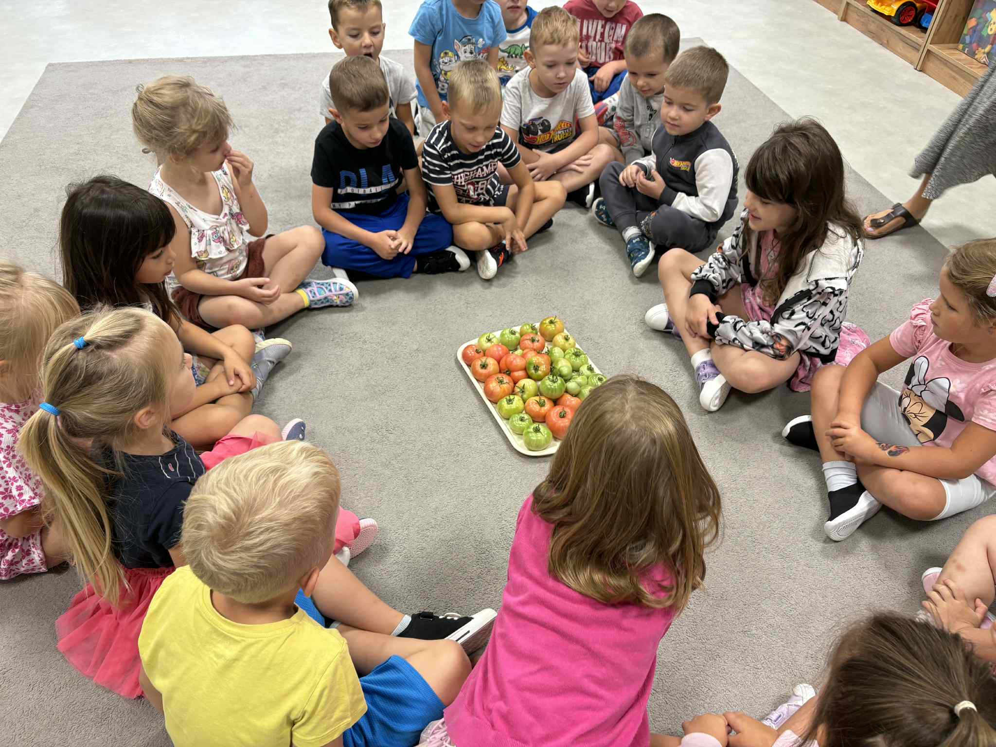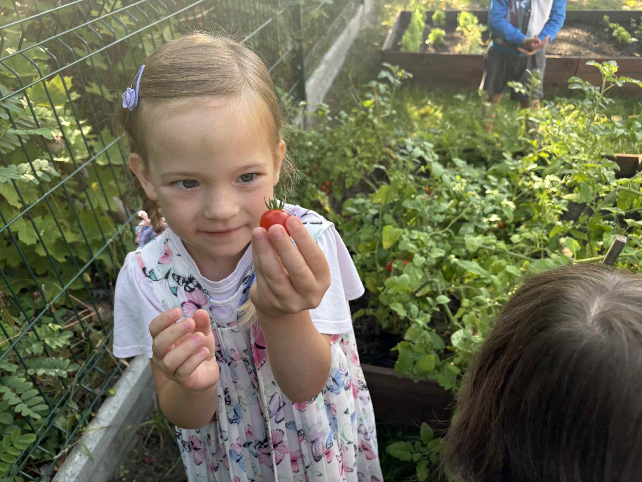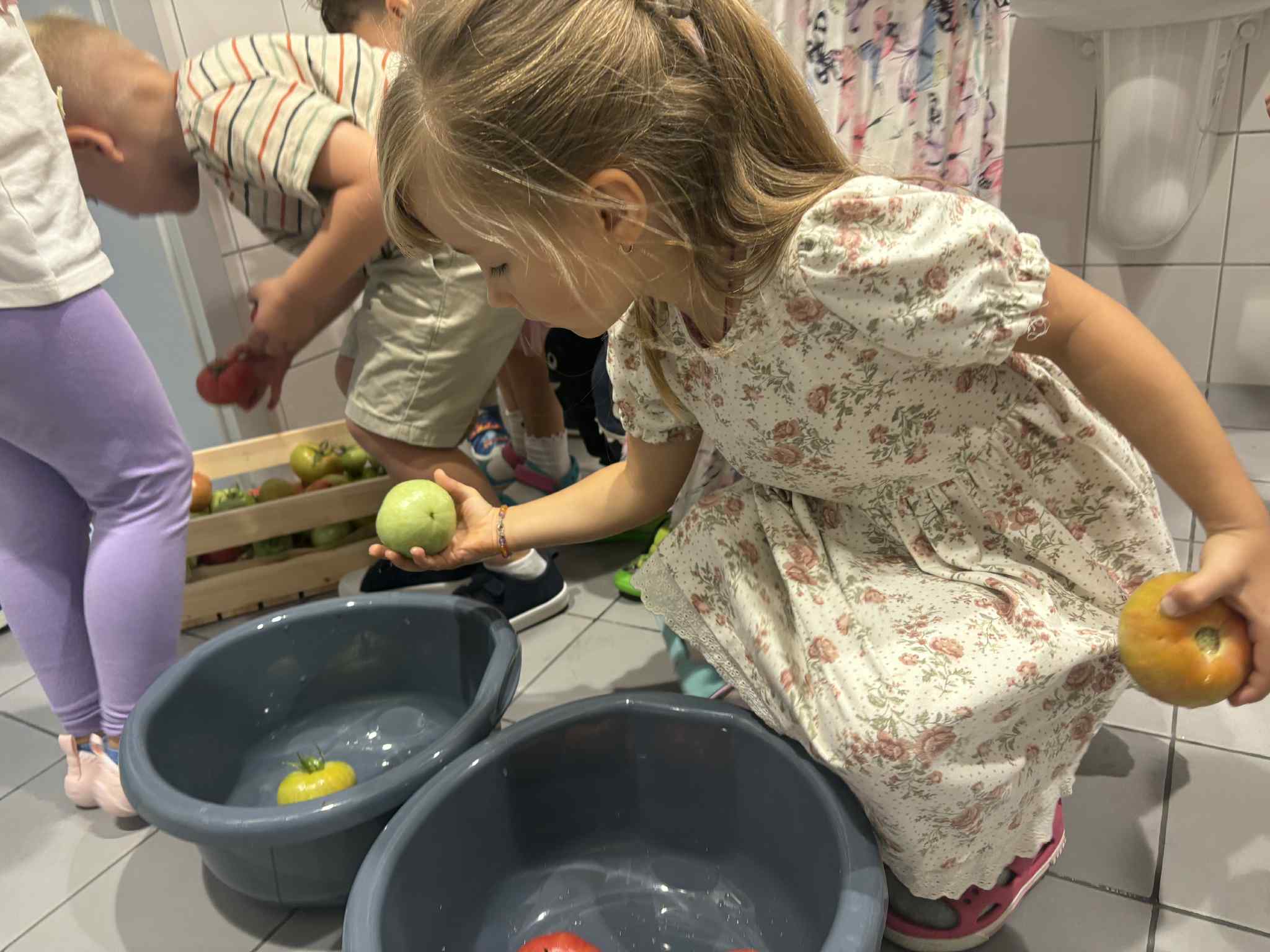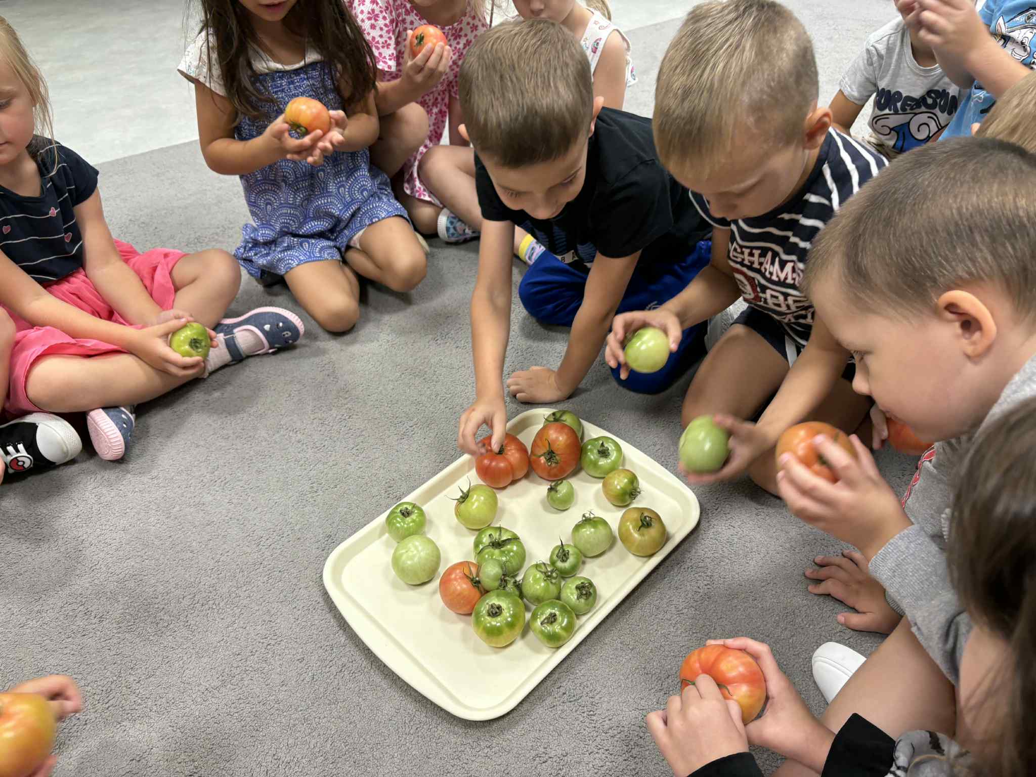 Na wiosnę dzieci z naszego przedszkola założyły własny warzywniak. Z zaangażowaniem podlewały grządki, obserwowały, jak rośliny rosną i uczyły się cierpliwości. Po wakacyjnej przerwie na dzieci czekała wyjątkowa niespodzianka – rośliny pełne dorodnych, pomidorów! Ich widok wywołał ogromną radość i dumę. Część pomidorków była jeszcze zielona, więc zabraliśmy je do naszej sali. Dzieci mogły każdego dnia obserwować, jak szybko dojrzewają, zmieniając barwę na intensywnie czerwoną. Przedszkolaki samodzielnie zerwały dojrzałe owoce, dokładnie je umyły, a potem ze smakiem zjadły na śniadanie. Okazało się, że własnoręcznie wyhodowane warzywa smakują najlepiej!