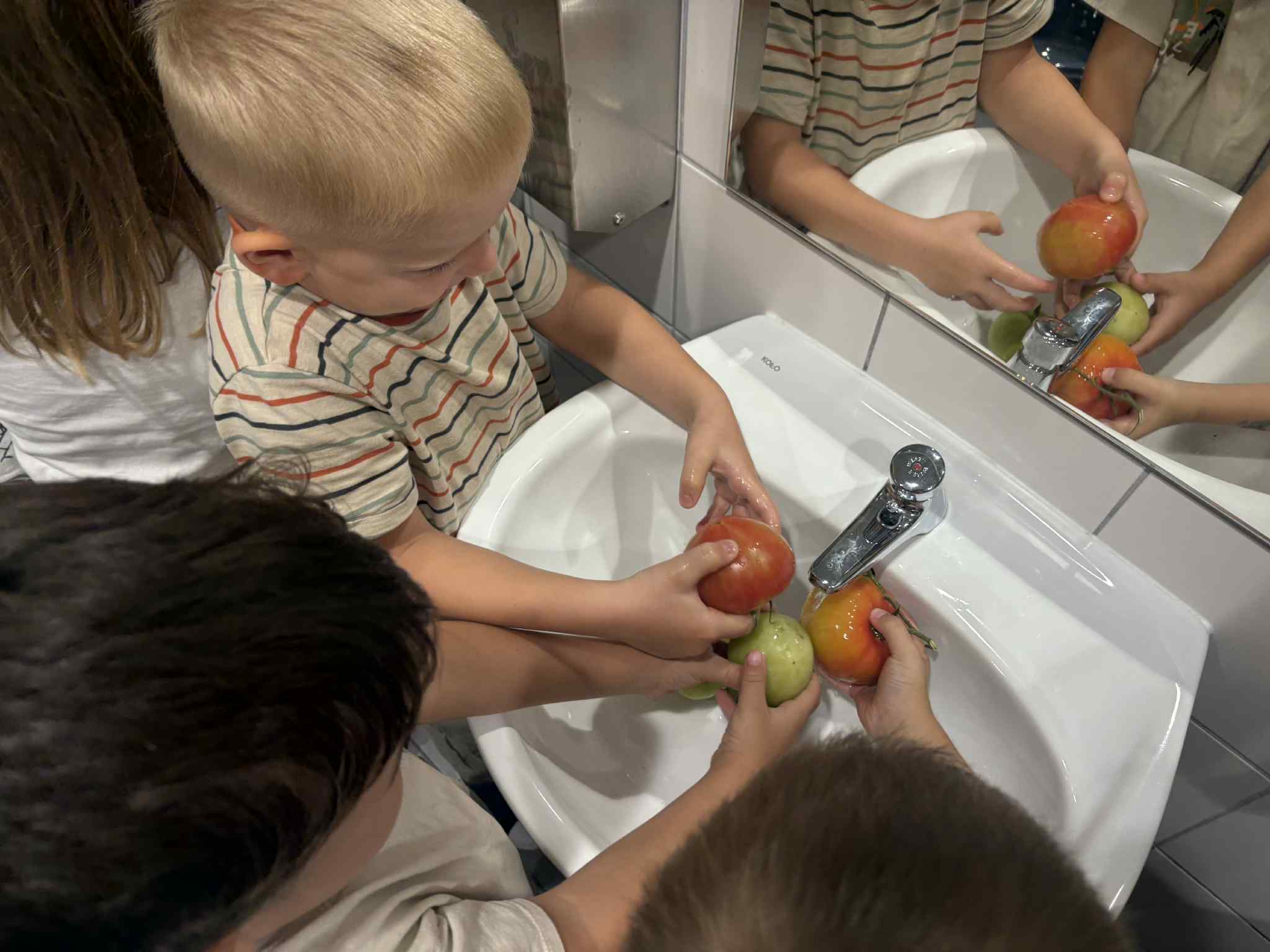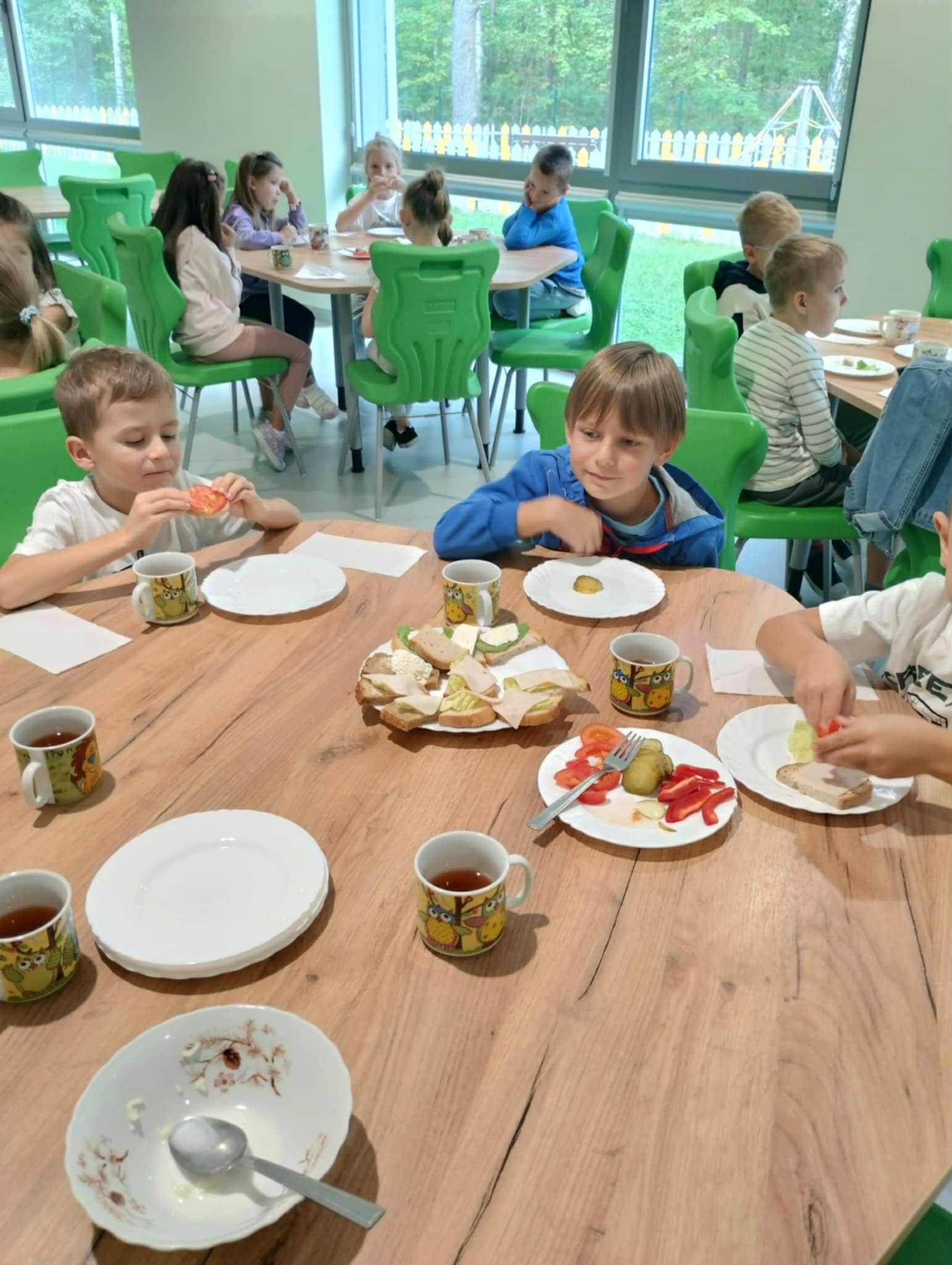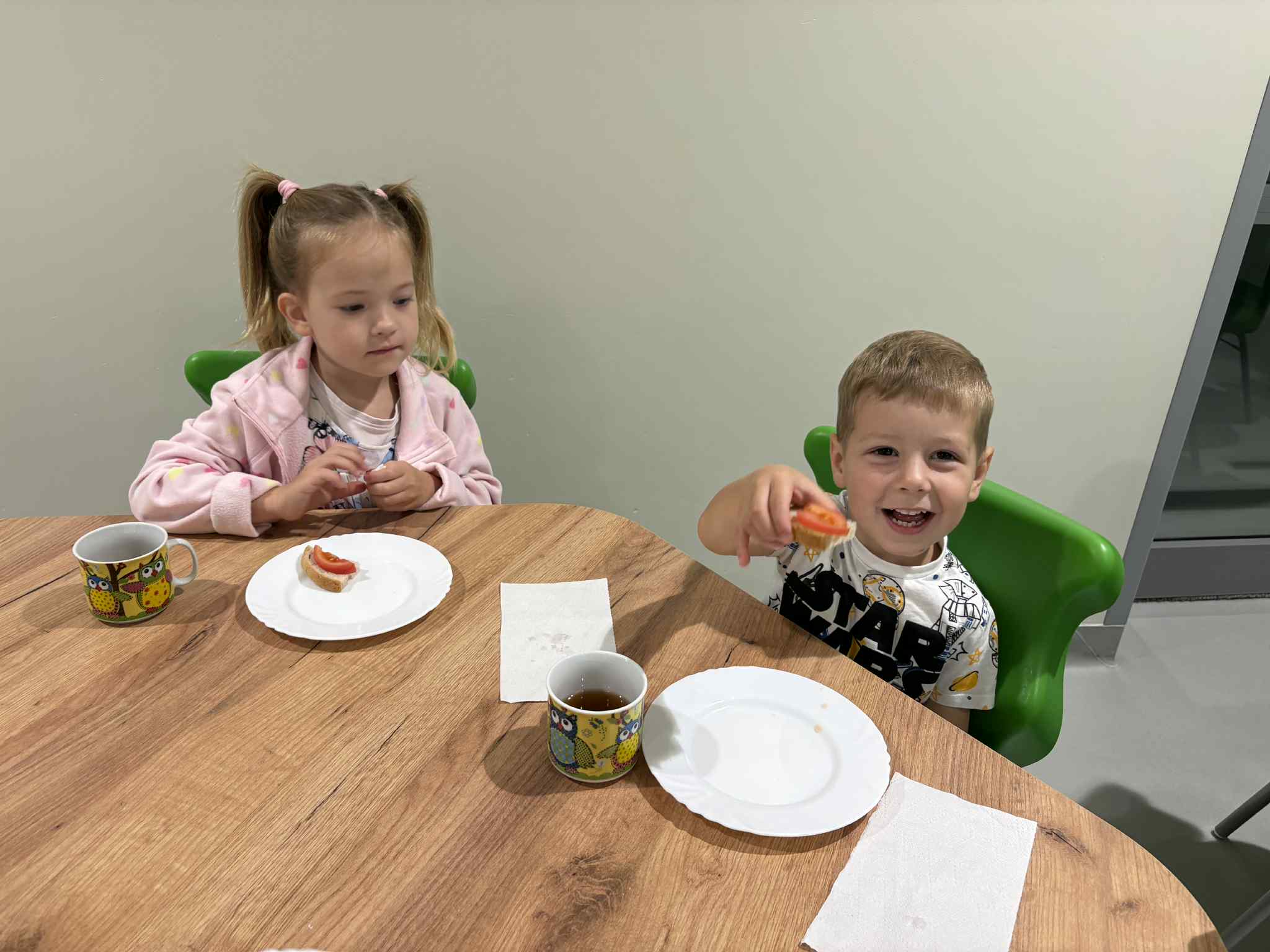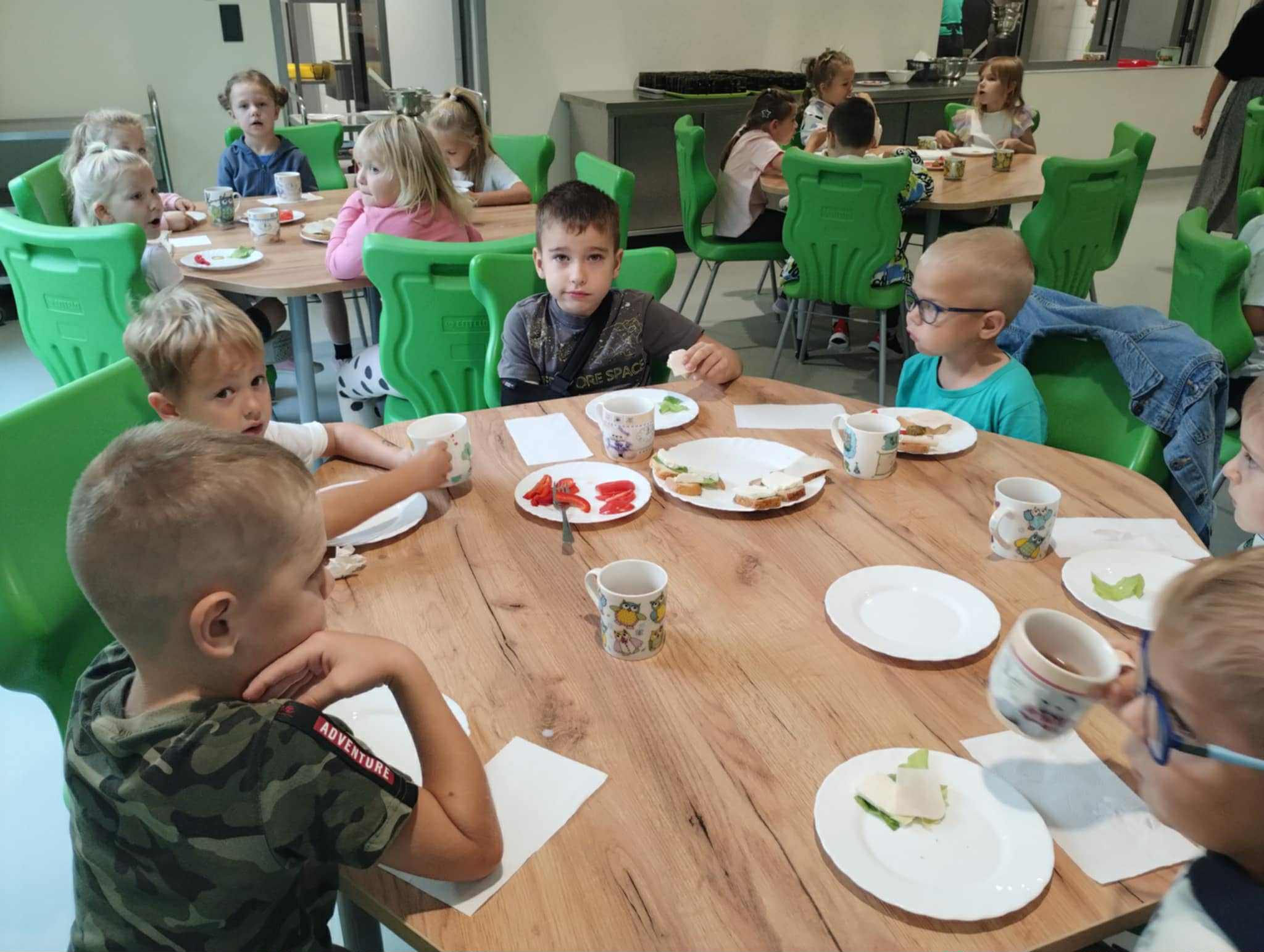 Na wiosnę dzieci z naszego przedszkola założyły własny warzywniak. Z zaangażowaniem podlewały grządki, obserwowały, jak rośliny rosną i uczyły się cierpliwości. Po wakacyjnej przerwie na dzieci czekała wyjątkowa niespodzianka – rośliny pełne dorodnych, pomidorów! Ich widok wywołał ogromną radość i dumę. Część pomidorków była jeszcze zielona, więc zabraliśmy je do naszej sali. Dzieci mogły każdego dnia obserwować, jak szybko dojrzewają, zmieniając barwę na intensywnie czerwoną. Przedszkolaki samodzielnie zerwały dojrzałe owoce, dokładnie je umyły, a potem ze smakiem zjadły na śniadanie. Okazało się, że własnoręcznie wyhodowane warzywa smakują najlepiej!