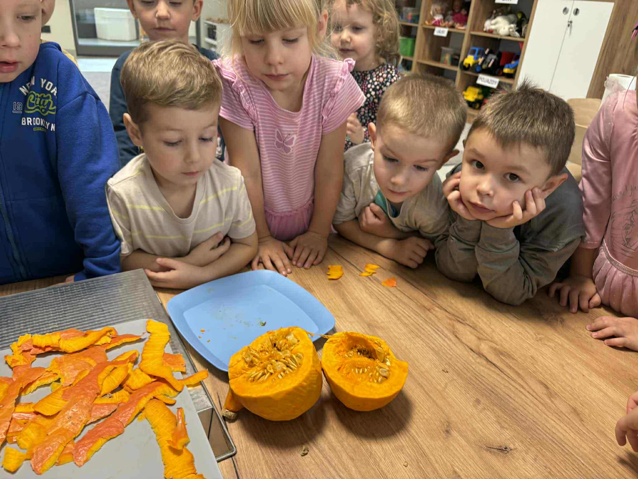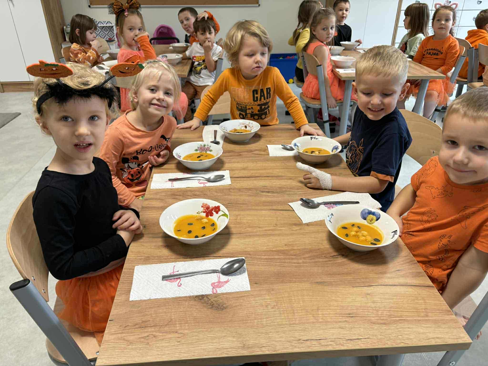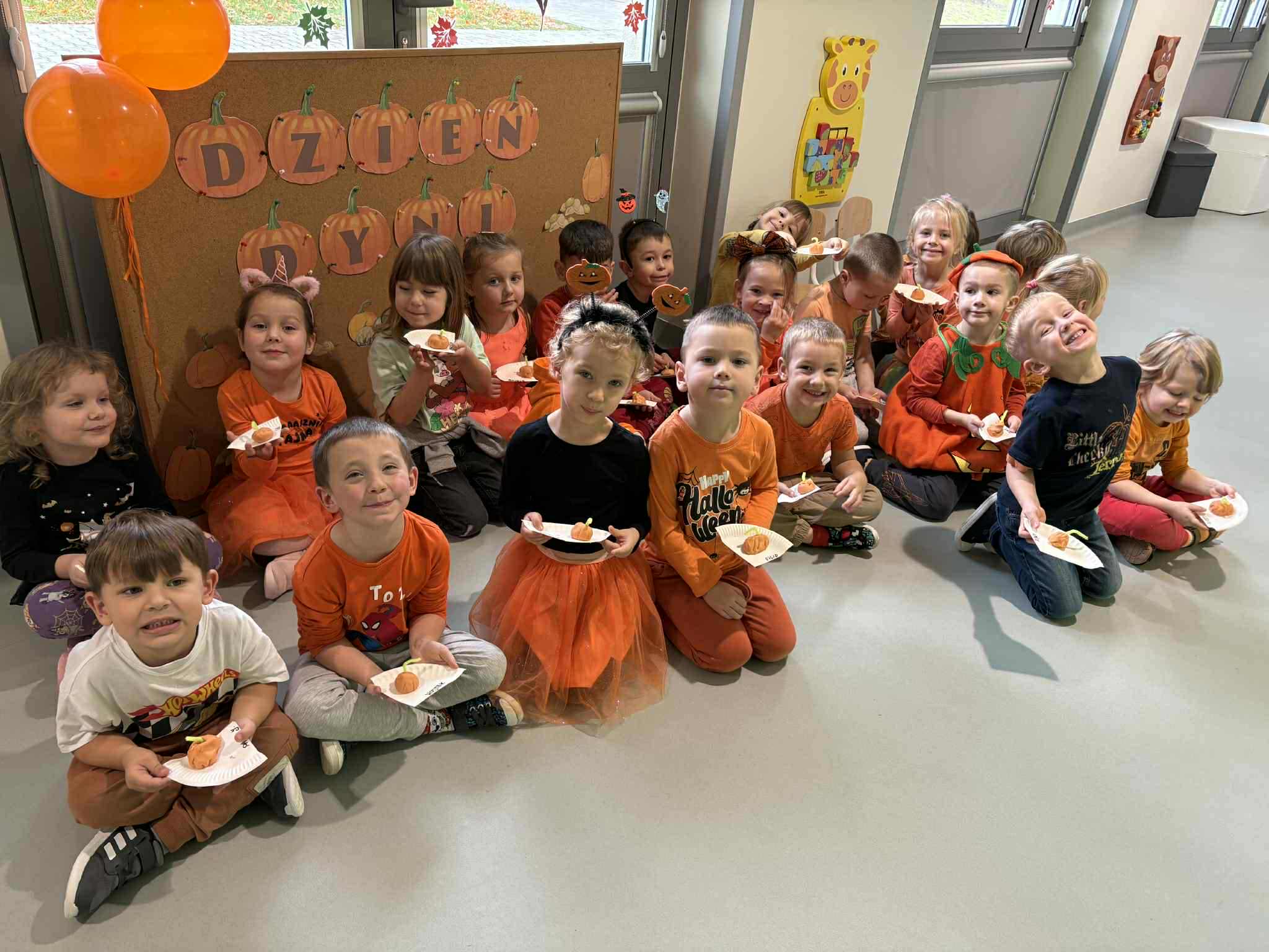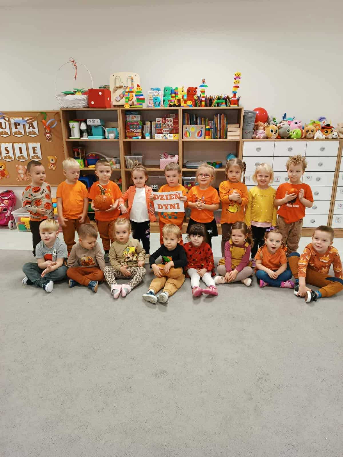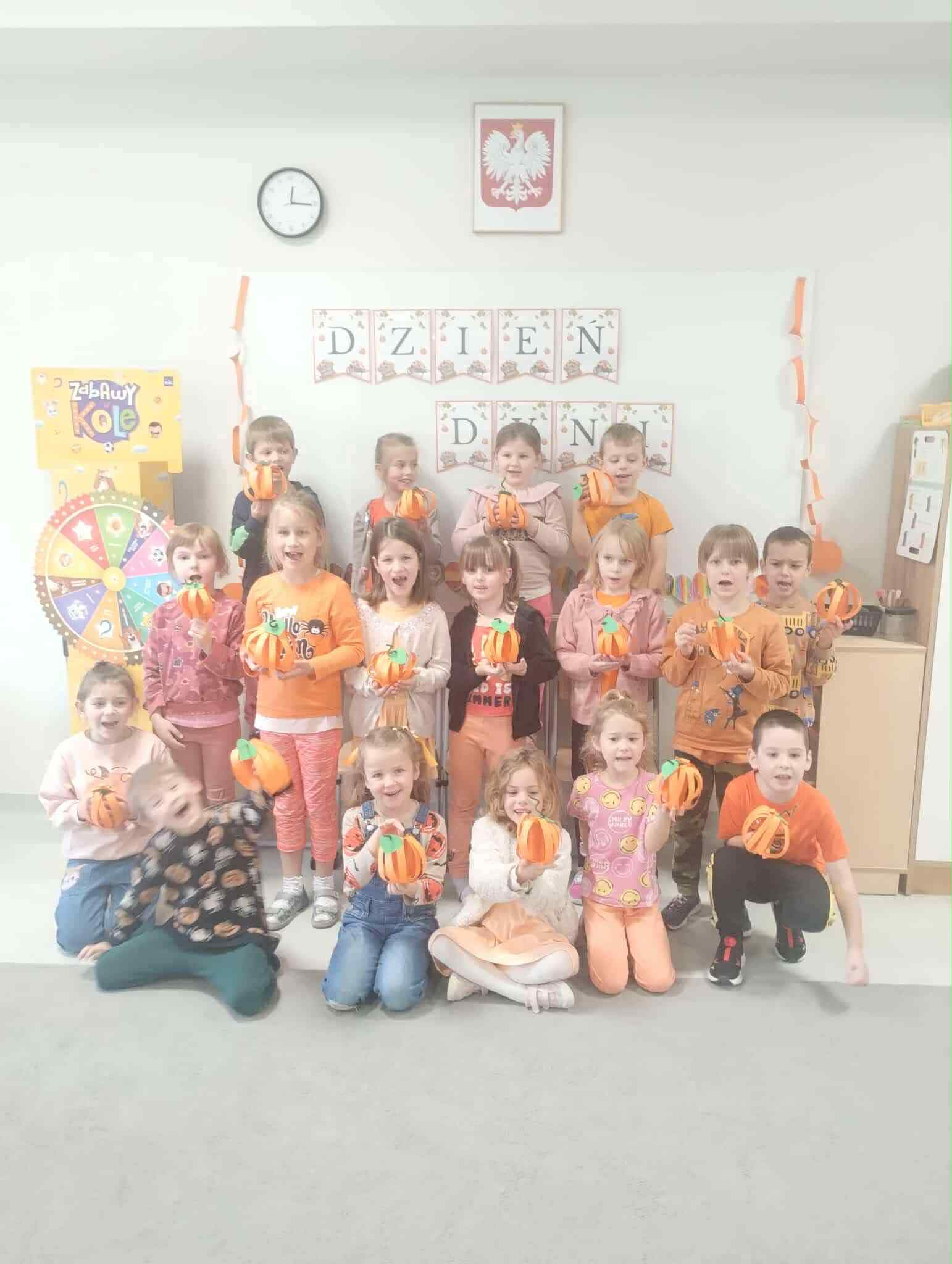 W piątek, 31 października, w naszym przedszkolu obchodziliśmy wyjątkowe święto – Dzień Dyni! 🧡 Przedszkolaki poznały różne odmiany tego jesiennego warzywa, dowiedziały się, jak rośnie dynia i do czego można ją wykorzystać w kuchni. Nie zabrakło też pysznych atrakcji! 😋 Dzieci wspólnie piekły ciasto dyniowe, które wypełniło przedszkole cudownym zapachem jesieni. Na obiad czekała na wszystkich aromatyczna zupa krem z dyni, przygotowana specjalnie z tej okazji. Po degustacji przyszła pora na dyniowe zabawy i konkurencje – były tańce z dynią, tor przeszkód, a także kreatywne prace plastyczne z wykorzystaniem koloru pomarańczowego. To był dzień pełen śmiechu, nauki i wspólnej zabawy. Dziękujemy wszystkim dzieciom za wspaniałe zaangażowanie – już nie możemy się doczekać kolejnych takich dni! 🍂