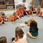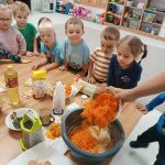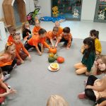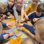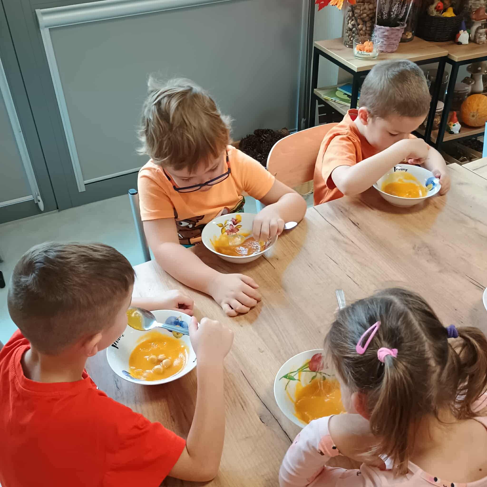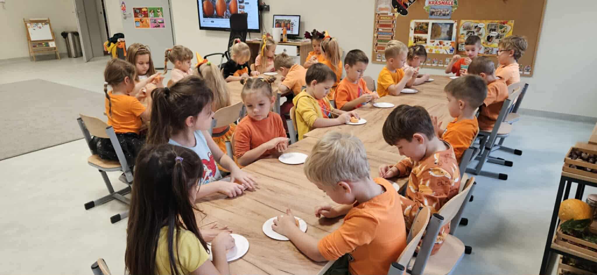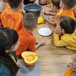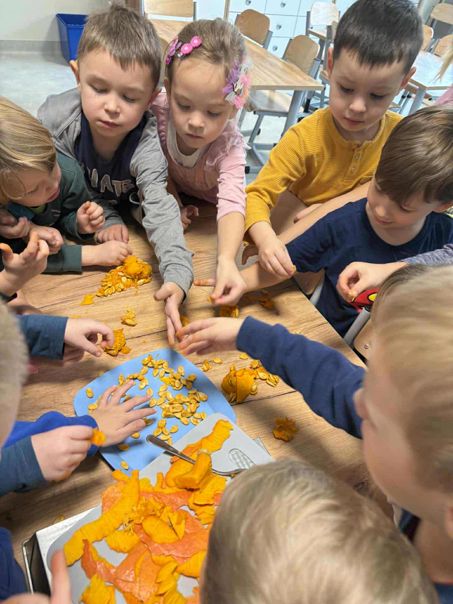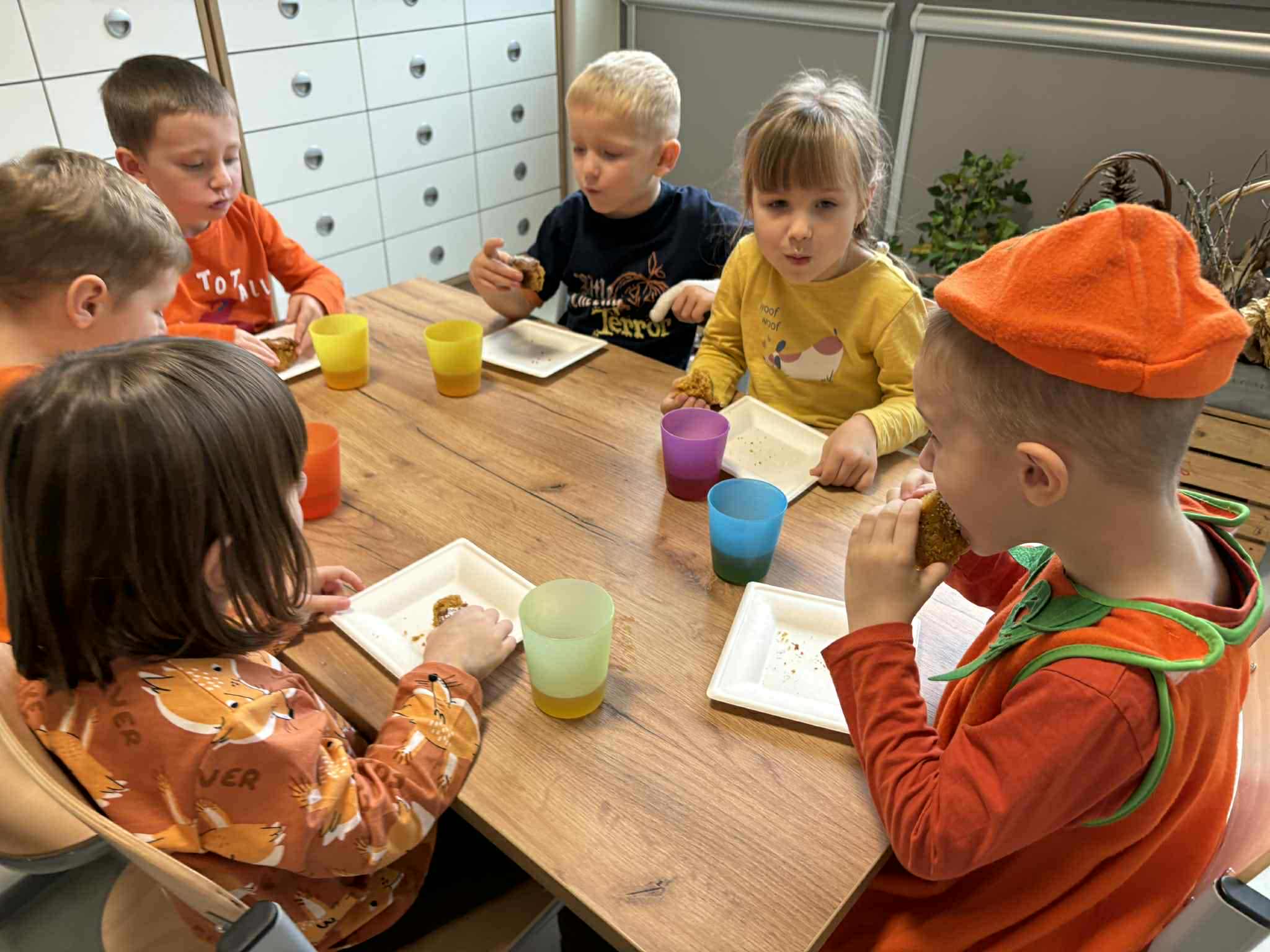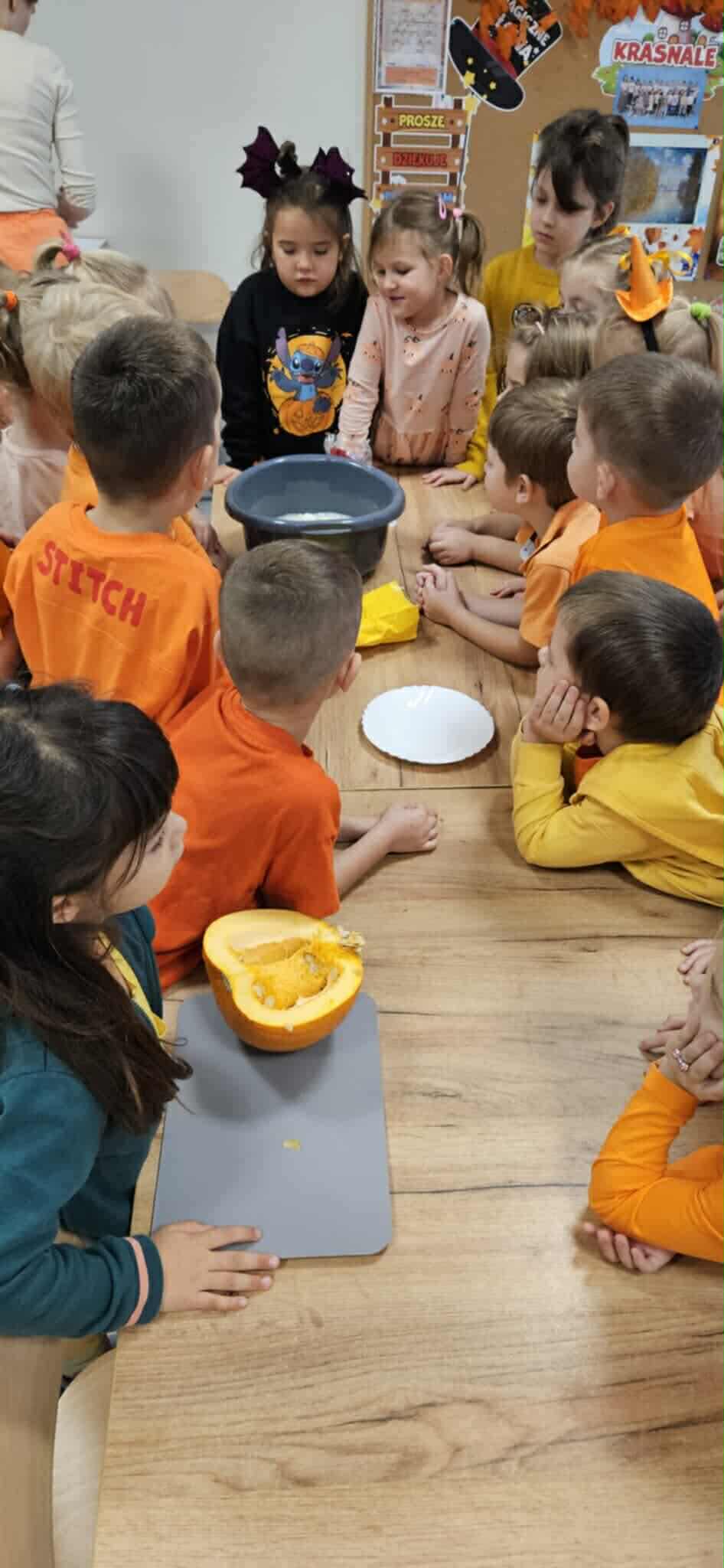 W piątek, 31 października, w naszym przedszkolu obchodziliśmy wyjątkowe święto – Dzień Dyni! 🧡 Przedszkolaki poznały różne odmiany tego jesiennego warzywa, dowiedziały się, jak rośnie dynia i do czego można ją wykorzystać w kuchni. Nie zabrakło też pysznych atrakcji! 😋 Dzieci wspólnie piekły ciasto dyniowe, które wypełniło przedszkole cudownym zapachem jesieni. Na obiad czekała na wszystkich aromatyczna zupa krem z dyni, przygotowana specjalnie z tej okazji. Po degustacji przyszła pora na dyniowe zabawy i konkurencje – były tańce z dynią, tor przeszkód, a także kreatywne prace plastyczne z wykorzystaniem koloru pomarańczowego. To był dzień pełen śmiechu, nauki i wspólnej zabawy. Dziękujemy wszystkim dzieciom za wspaniałe zaangażowanie – już nie możemy się doczekać kolejnych takich dni! 🍂