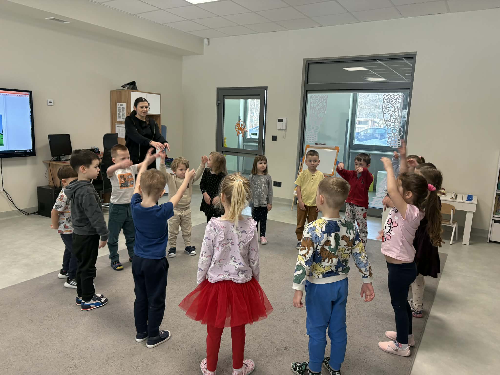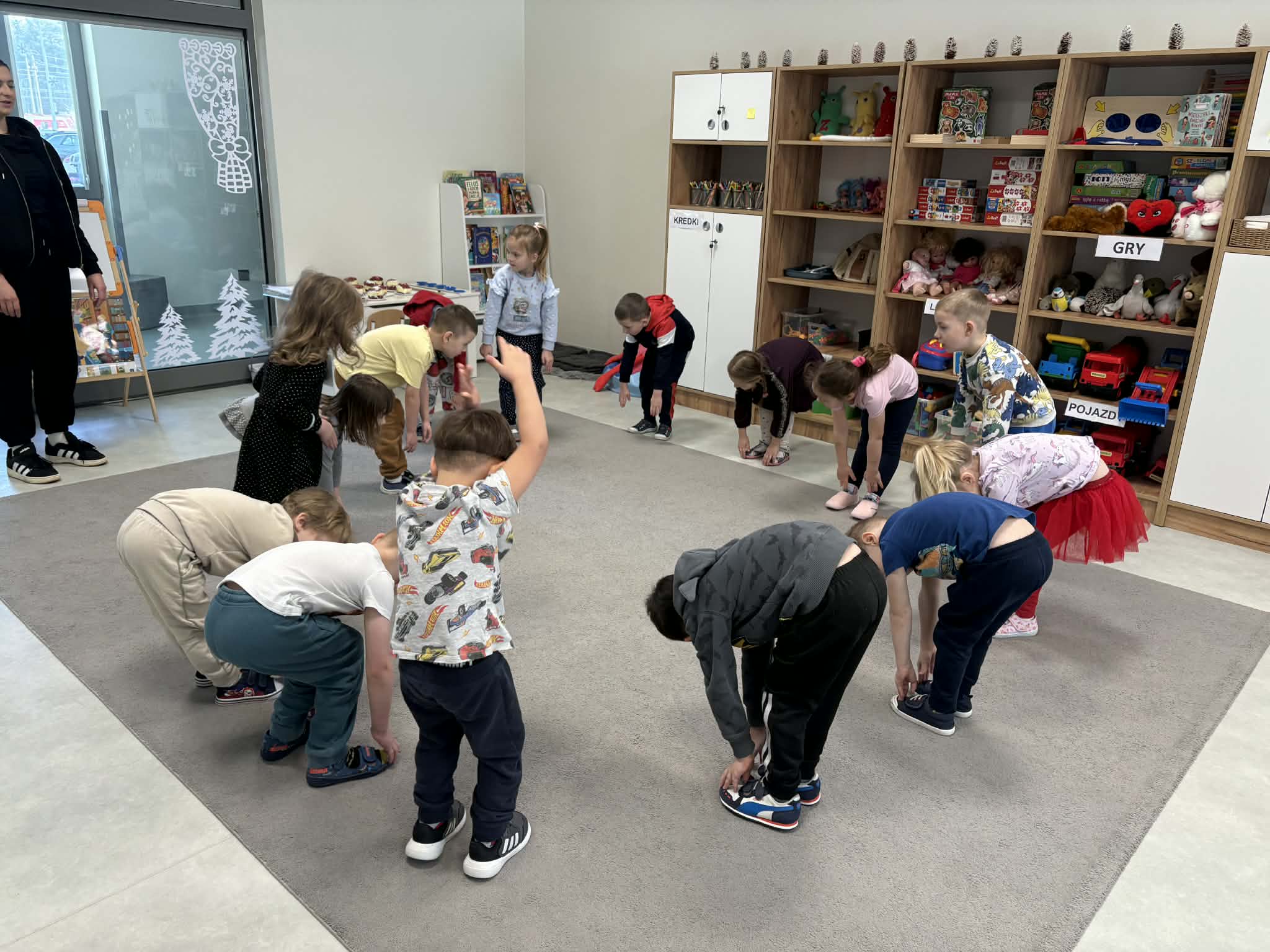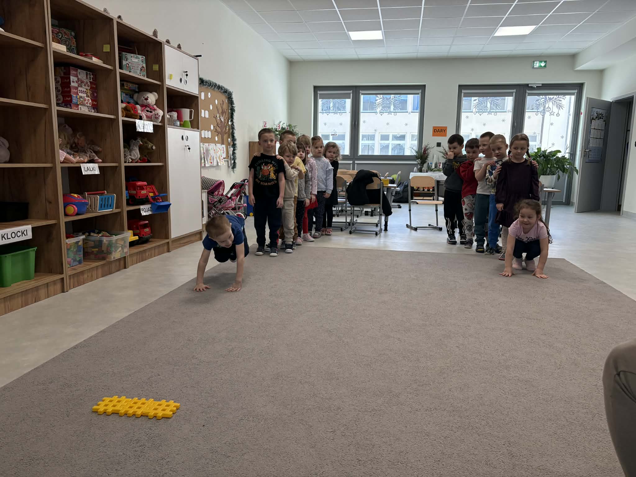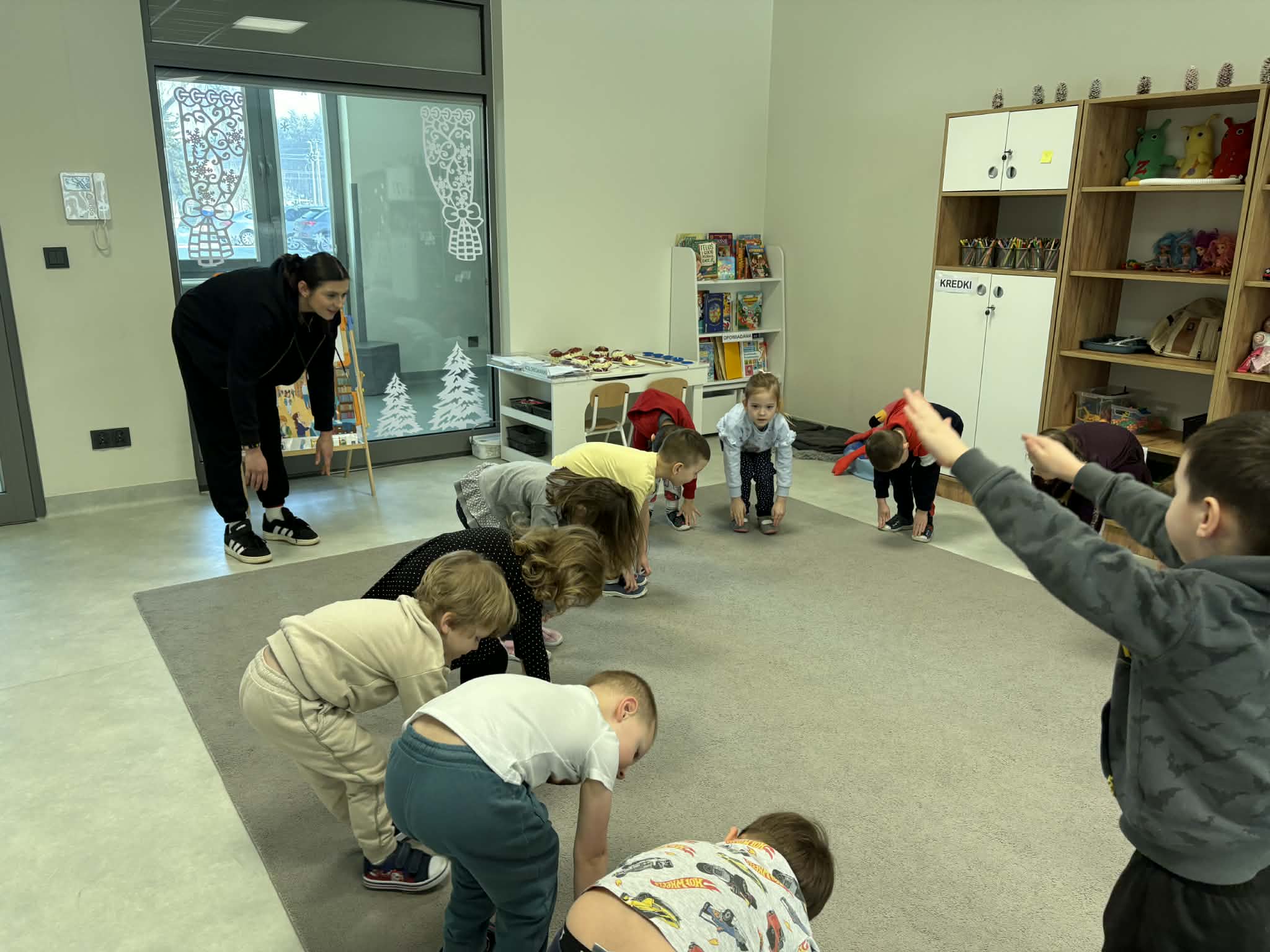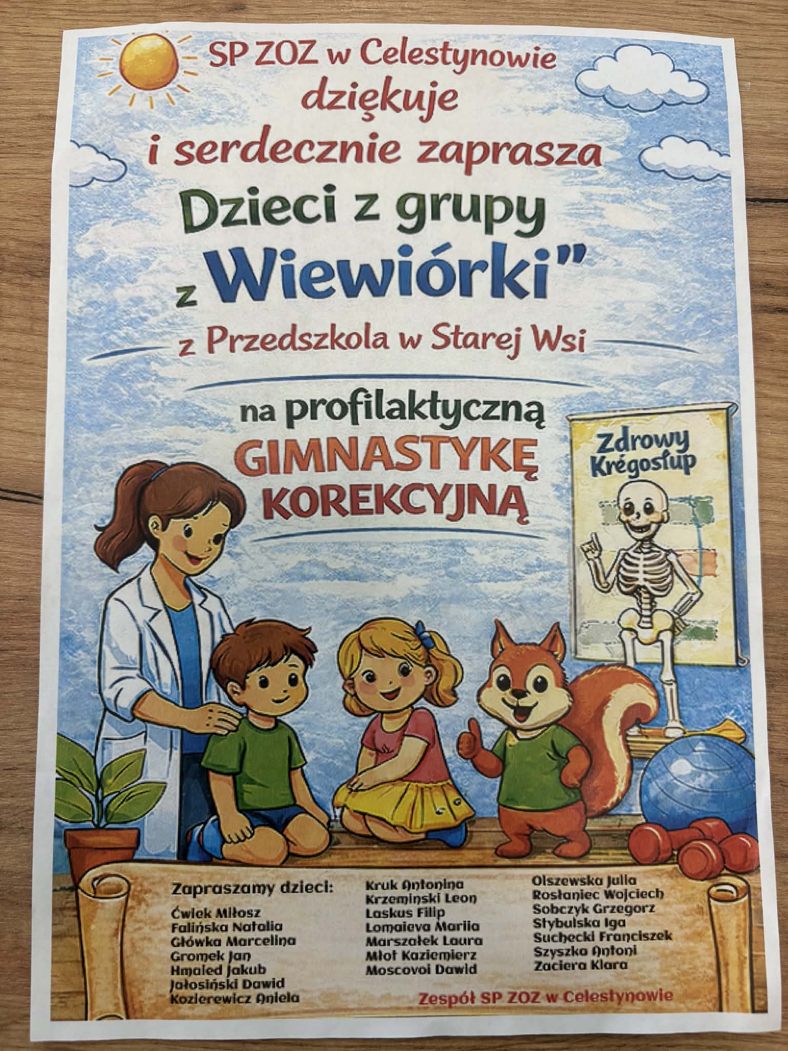 Dzieci z grupy „Wiewiórki” wzięły udział w konkursie plastycznym pt. „Moje zdrowie”, ogłoszonym przez Samodzielny Publiczny Zakład Opieki Zdrowotnej w Celestynowie. Przedszkolaki z ogromnym zaangażowaniem przygotowały swoje prace, wykazując się dużą wiedzą na temat zdrowego stylu życia oraz kreatywnością w przedstawianiu sposobów dbania o zdrowie. W ramach nagrody dzieci z grupy „Wiewiórki” otrzymały wyjątkowe zaproszenie na profilaktyczną gimnastykę korekcyjną. Nasze przedszkole odwiedzili fizjoterapeuci, którzy przeprowadzili zajęcia pod hasłem „Zdrowy kręgosłup”. Podczas spotkania dzieci aktywnie uczestniczyły w ćwiczeniach ruchowych, uczyły się prawidłowej postawy ciała oraz dowiedziały się, jak ważna jest codzienna aktywność fizyczna. Zajęcia przebiegły w radosnej atmosferze, a dzieci z wielkim entuzjazmem wykonywały wszystkie ćwiczenia. To była nie tylko cenna lekcja zdrowia, ale także wspaniała zabawa!