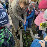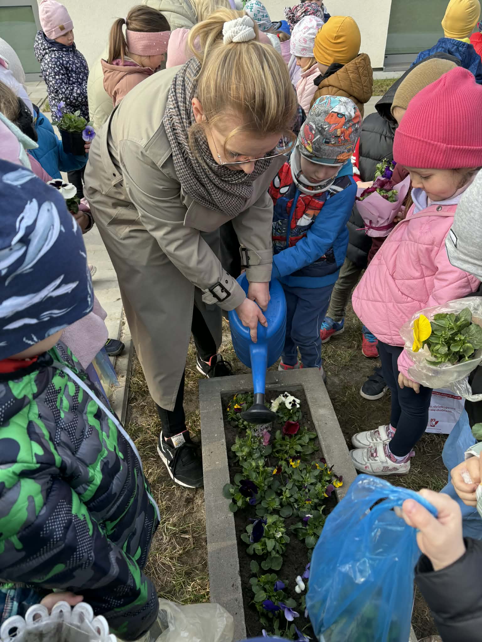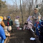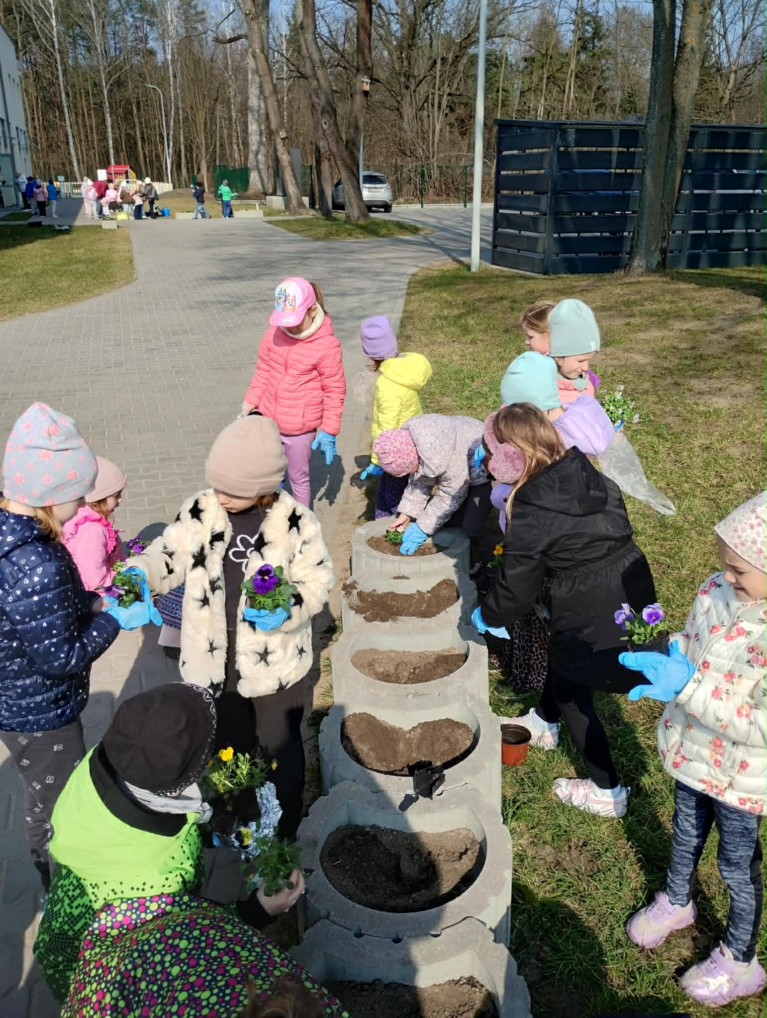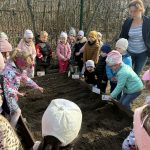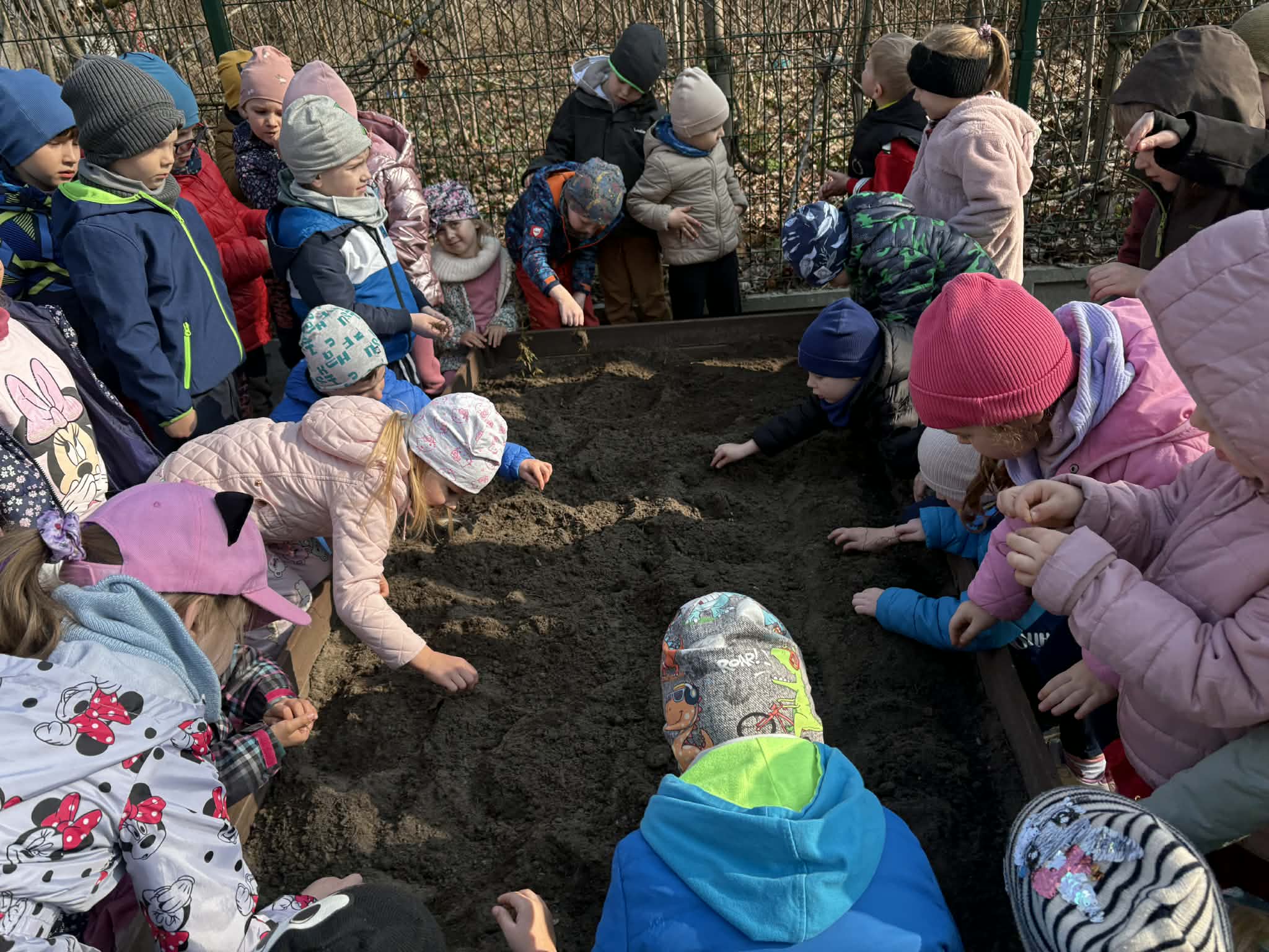 Zanim rozpoczęły sadzenie, dzieci przygotowały skrzynie – przy użyciu grabek usunęły stare liście oraz korzenie i odpowiednio przygotowały glebę. Następnie w skrzyniach na warzywa dzieci wysadziły cebulę oraz posiały szpinak, koperek i marchewkę. To była nie tylko świetna zabawa, ale również cenna lekcja przyrody. Dzieci dowiedziały się, jak powstają warzywa i jak ważna jest cierpliwość oraz regularna pielęgnacja roślin. Teraz z niecierpliwością będziemy obserwować, jak nasze warzywa rosną. Już nie możemy się doczekać pierwszych efektów!